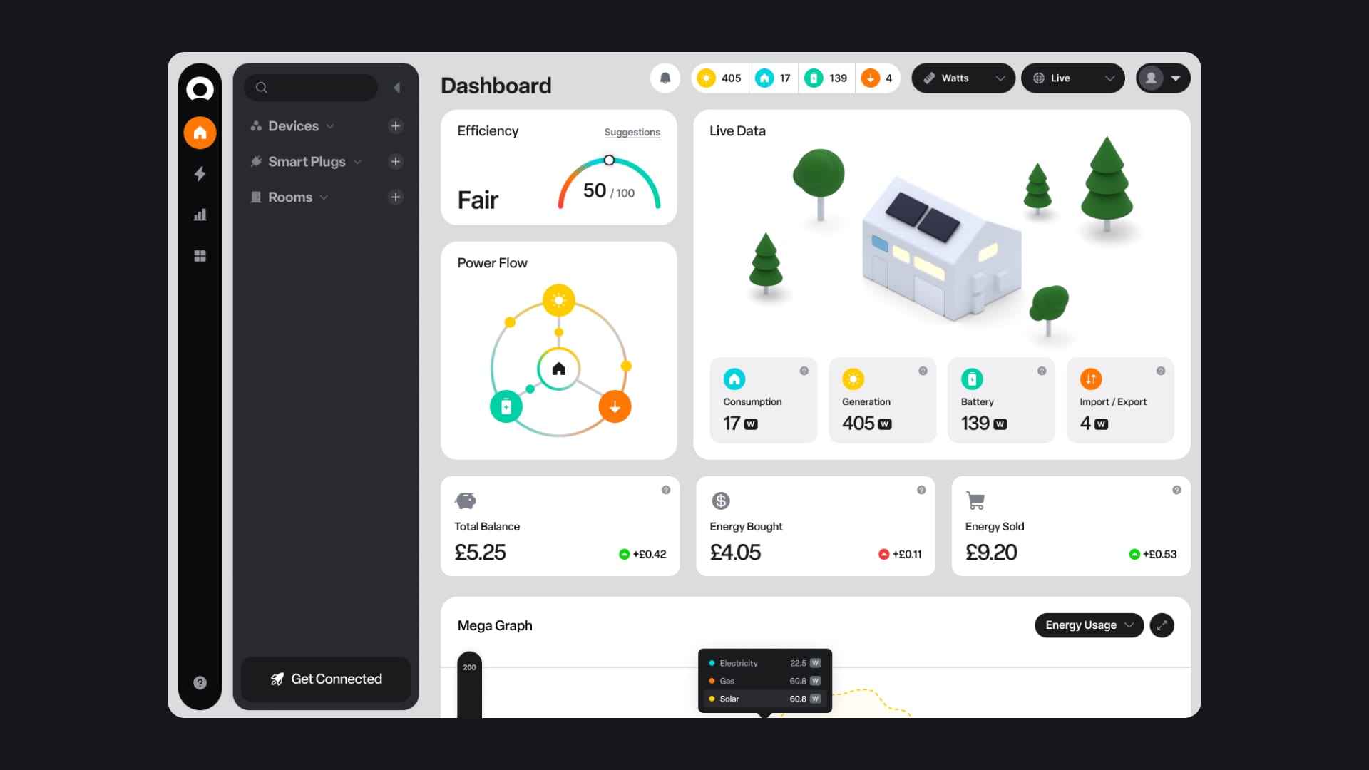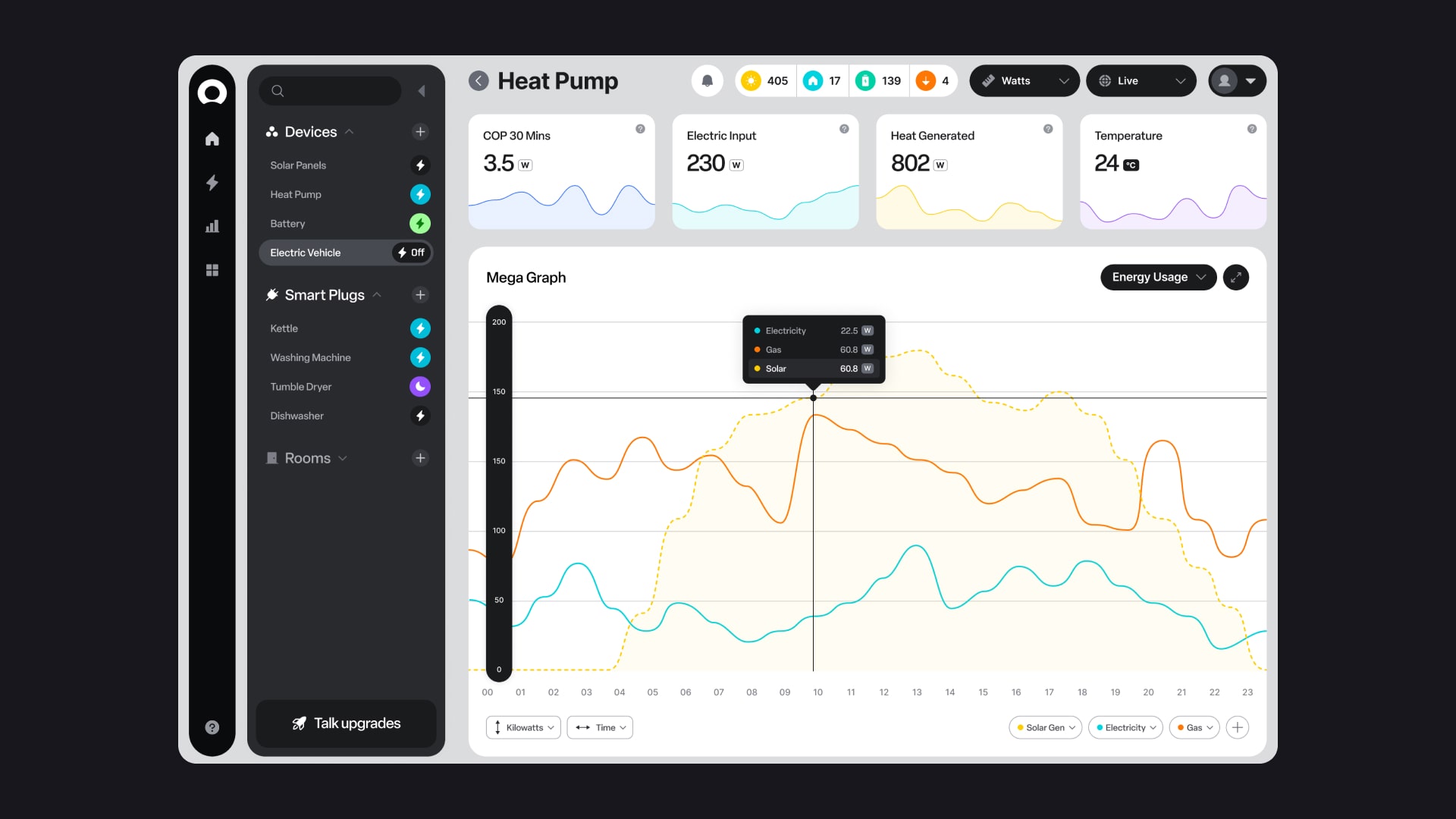 For early-stage clean-tech startups, securing Series A funding requires a product roadmap that proves scalability. Heatio needed to visualize an "advanced" future state for their energy management dashboard—one that could process complex multi-variable data streams (solar, gas, battery) without overwhelming the end user.